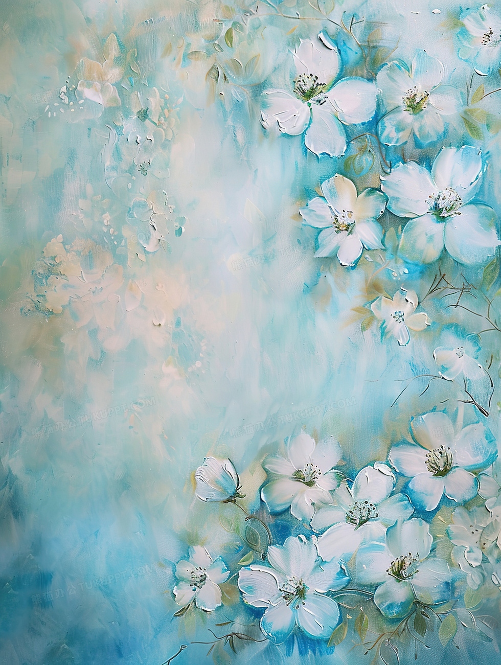 首页 > 背景图库 > 科技艺术 > 广告背景 > 蓝色手绘油画质感植物花朵装饰边框背景