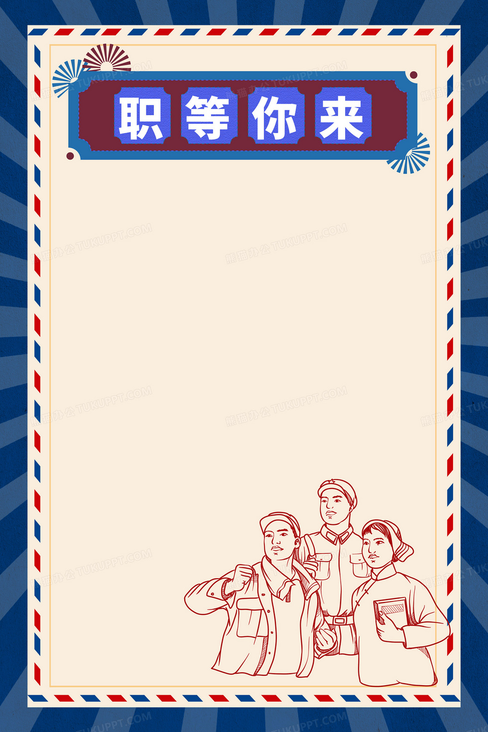 本作品内容为蓝色复古招聘职等你来合成背景, 格式为 psd, 大小71 MB, 图片尺寸为3543 x 5314, 作品中背景图片无需修改, 源文件无水印,可以直接使用, 欢迎使用熊猫办公。 如认为平台内容涉嫌侵权,可通过邮件:tousu@tukuppt.com提出书面通知,我们将及时处理。