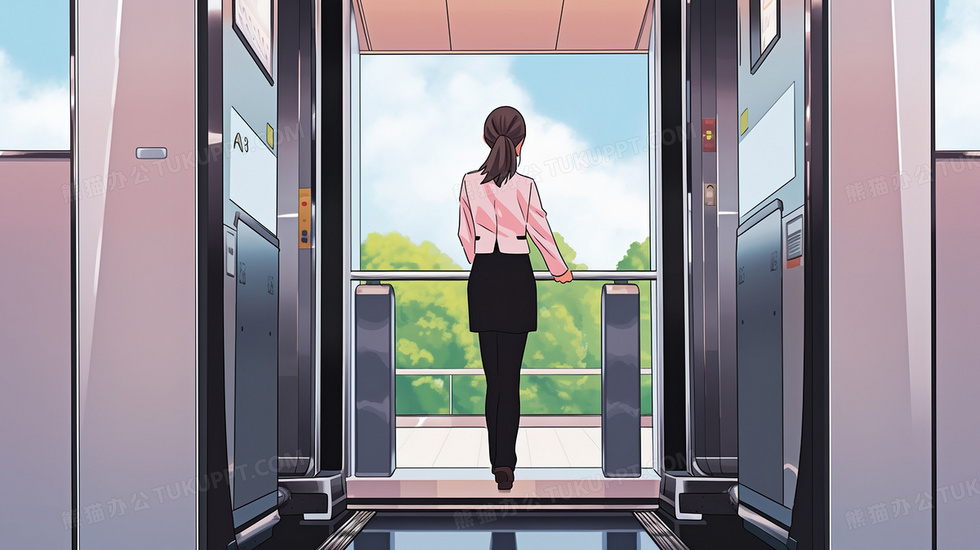 本作品内容为电梯门前的职业女性商务插画, 格式为 jpg, 大小2 MB, 图片尺寸为2912 x 1632, 源文件无水印, 欢迎使用熊猫办公。 如认为平台内容涉嫌侵权,可通过邮件:tousu@tukuppt.com提出书面通知,我们将及时处理。