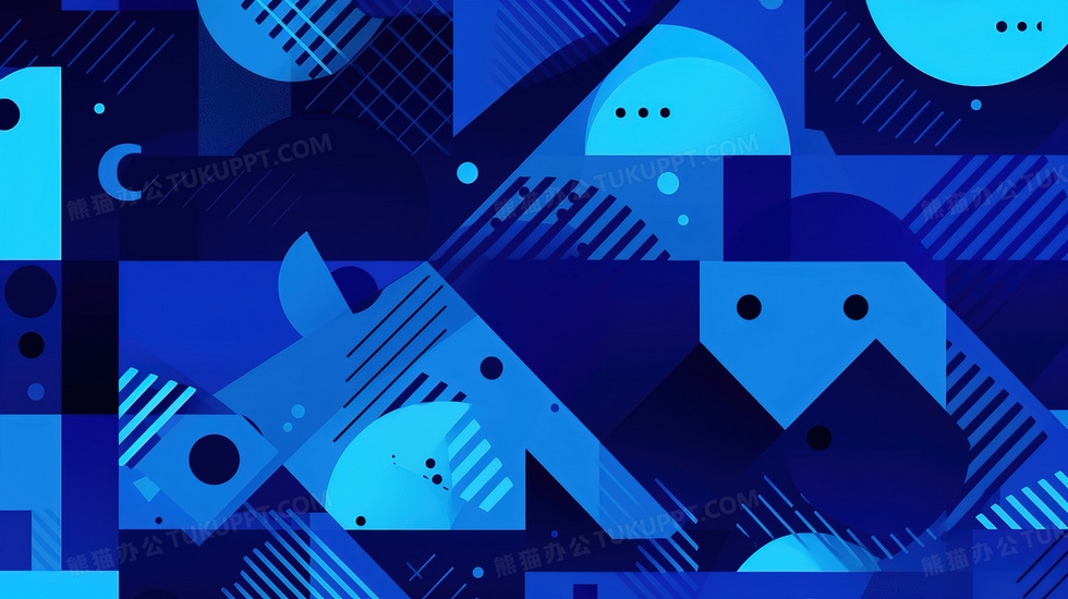 本作品内容为蓝色抽象不对称几何装饰插画, 格式为 jpg, 大小2 MB, 图片尺寸为2912 x 1632, 源文件无水印, 欢迎使用熊猫办公。 如认为平台内容涉嫌侵权,可通过邮件:tousu@tukuppt.com提出书面通知,我们将及时处理。