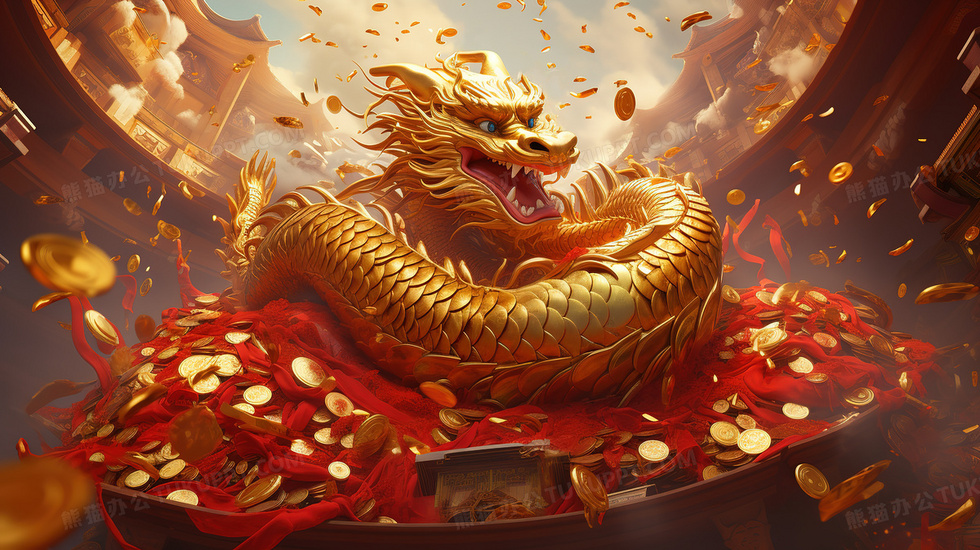 本作品内容为守着金色宝藏财富的金色神龙创意插画, 格式为 jpg, 大小7 MB, 图片尺寸为2912 x 1632, 源文件无水印, 欢迎使用熊猫办公。 如认为平台内容涉嫌侵权,可通过邮件:tousu@tukuppt.com提出书面通知,我们将及时处理。