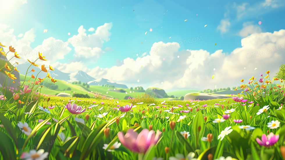 本作品内容为夏天草原上盛开的彩色小野花插画, 格式为 jpg, 大小3 MB, 图片尺寸为2912 x 1632, 源文件无水印, 欢迎使用熊猫办公。 如认为平台内容涉嫌侵权,可通过邮件:tousu@tukuppt.com提出书面通知,我们将及时处理。