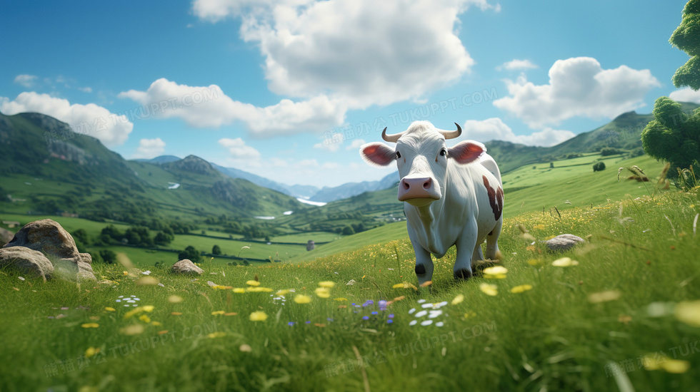 本作品内容为绿色草原上的白色奶牛风景图片, 格式为 jpg, 大小3 MB, 图片尺寸为2912 x 1632, 源文件无水印, 欢迎使用熊猫办公。 如认为平台内容涉嫌侵权,可通过邮件:tousu@tukuppt.com提出书面通知,我们将及时处理。