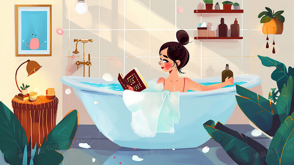 本作品内容为浴缸里泡澡的女孩插画, 格式为 jpg, 大小2 MB, 图片尺寸为2912 x 1632, 源文件无水印, 欢迎使用熊猫办公。 如认为平台内容涉嫌侵权,可通过邮件:tousu@tukuppt.com提出书面通知,我们将及时处理。