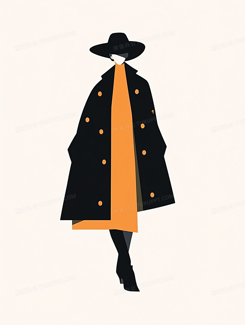 本作品内容为穿长外套袋宽檐帽的摩登女模特插画, 格式为 jpg, 大小1 MB, 图片尺寸为1856 x 2464, 源文件无水印, 欢迎使用熊猫办公。 如认为平台内容涉嫌侵权,可通过邮件:tousu@tukuppt.com提出书面通知,我们将及时处理。