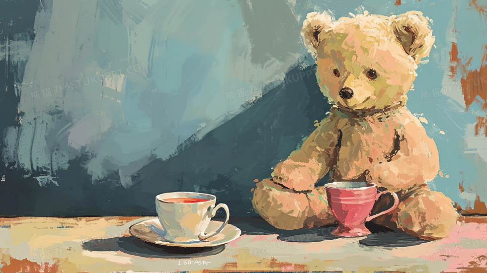 首页 > 插画 > 科技艺术 > 水彩手绘 > 桌上的咖啡和小熊油画插画