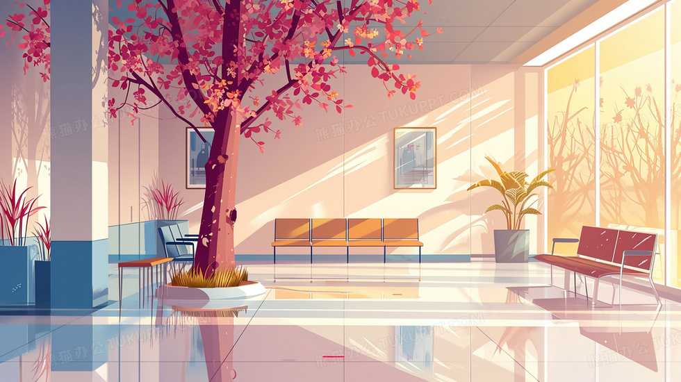本作品内容为明亮的办公区域等候区插画, 格式为 jpg, 大小3 MB, 图片尺寸为2912 x 1632, 源文件无水印, 欢迎使用熊猫办公。 如认为平台内容涉嫌侵权,可通过邮件:tousu@tukuppt.com提出书面通知,我们将及时处理。