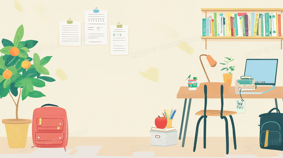 本作品内容为扁平化开学季书桌学习用品插画, 格式为 jpg, 大小2 MB, 图片尺寸为2912 x 1632, 源文件无水印, 欢迎使用熊猫办公。 如认为平台内容涉嫌侵权,可通过邮件:tousu@tukuppt.com提出书面通知,我们将及时处理。