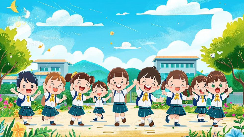 本作品内容为开学季新学期校园内小学生插画, 格式为 jpg, 大小4 MB, 图片尺寸为2912 x 1632, 源文件无水印, 欢迎使用熊猫办公。 如认为平台内容涉嫌侵权,可通过邮件:tousu@tukuppt.com提出书面通知,我们将及时处理。