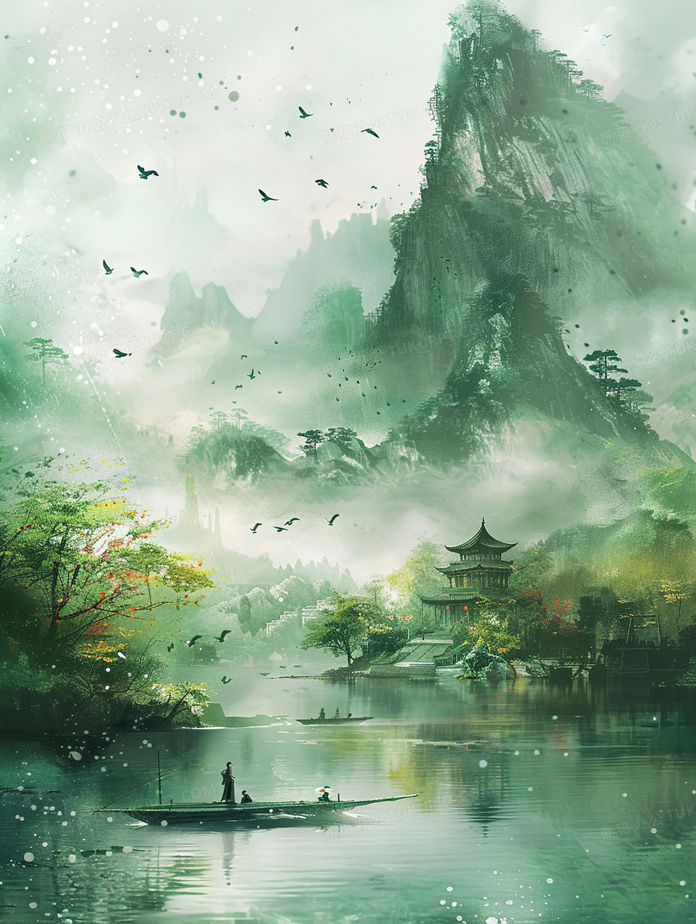 本作品内容为青山绿水的湖中小船插画, 格式为 jpg, 大小4 MB, 图片尺寸为1856 x 2464, 源文件无水印, 欢迎使用熊猫办公。 如认为平台内容涉嫌侵权,可通过邮件:tousu@tukuppt.com提出书面通知,我们将及时处理。