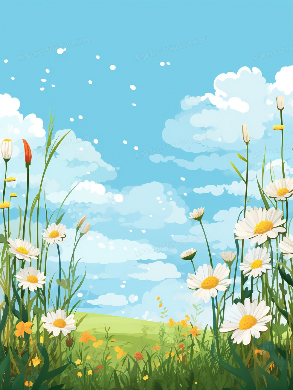 本作品内容为户外卡通植物花卉背景, 格式为 jpg, 大小3 MB, 图片尺寸为1856 x 2464, 作品中背景图片无需修改, 源文件无水印,可以直接使用, 欢迎使用熊猫办公。 如认为平台内容涉嫌侵权,可通过邮件:tousu@tukuppt.com提出书面通知,我们将及时处理。