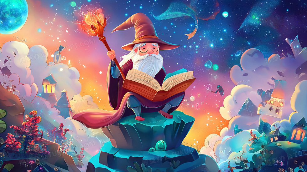本作品内容为童话故事虚拟人物卡通老魔法师插画, 格式为 jpg, 大小3 MB, 图片尺寸为2912 x 1632, 源文件无水印, 欢迎使用熊猫办公。 如认为平台内容涉嫌侵权,可通过邮件:tousu@tukuppt.com提出书面通知,我们将及时处理。