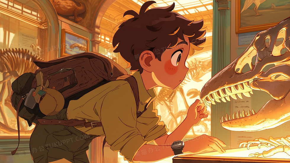 本作品内容为观察恐龙化石好奇的小男孩插画, 格式为 jpg, 大小3 MB, 图片尺寸为2912 x 1632, 源文件无水印, 欢迎使用熊猫办公。 如认为平台内容涉嫌侵权,可通过邮件:tousu@tukuppt.com提出书面通知,我们将及时处理。