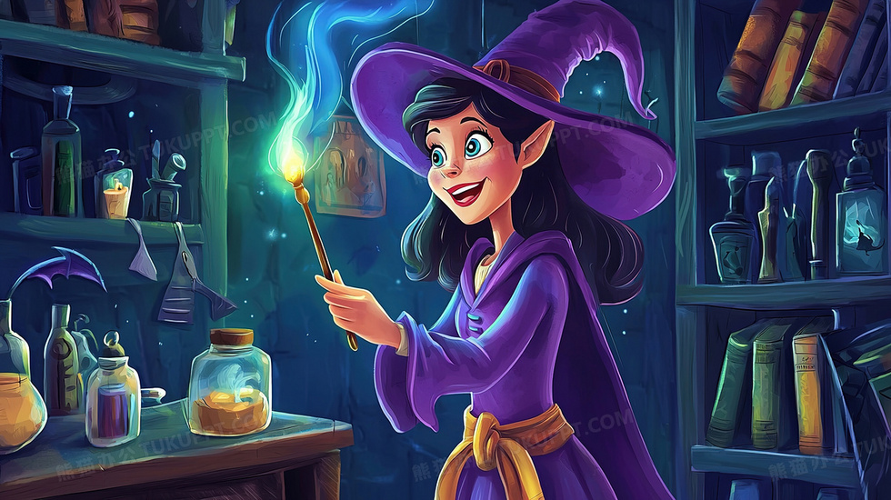 本作品内容为童话故事丽释放魔法的女巫卡通人物插画, 格式为 jpg, 大小3 MB, 图片尺寸为2912 x 1632, 源文件无水印, 欢迎使用熊猫办公。 如认为平台内容涉嫌侵权,可通过邮件:tousu@tukuppt.com提出书面通知,我们将及时处理。