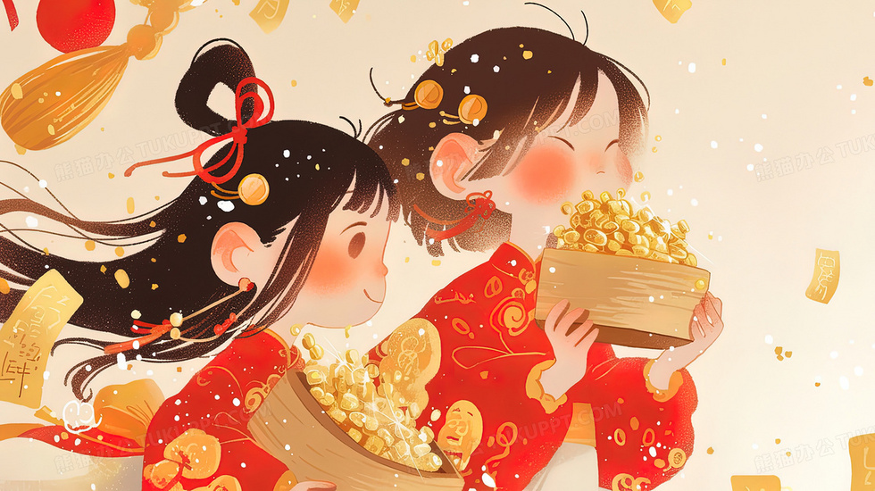 本作品内容为新年手捧着聚宝盆的两个女孩插画, 格式为 jpg, 大小3 MB, 图片尺寸为2912 x 1632, 源文件无水印, 欢迎使用熊猫办公。 如认为平台内容涉嫌侵权,可通过邮件:tousu@tukuppt.com提出书面通知,我们将及时处理。