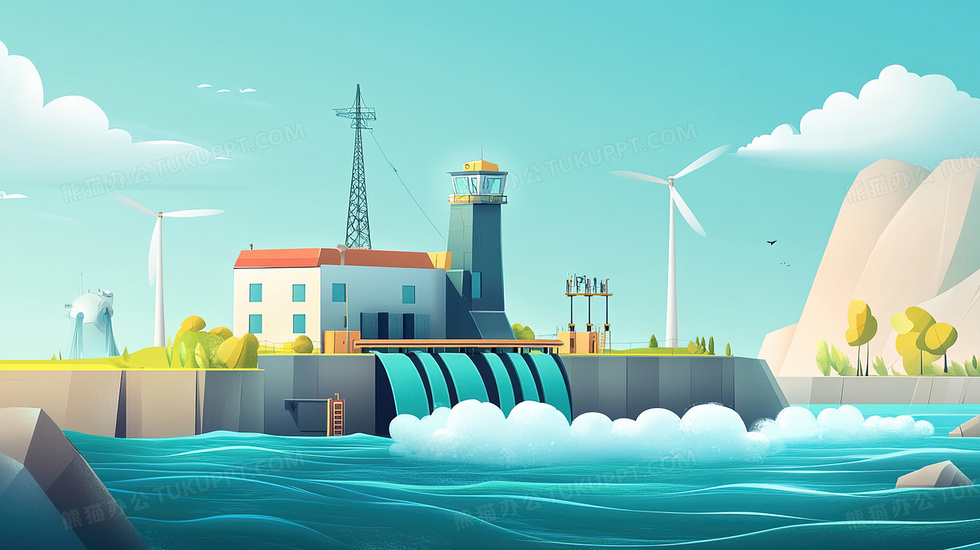 本作品内容为清洁能源水力发电站插画, 格式为 jpg, 大小3 MB, 图片尺寸为2912 x 1632, 源文件无水印, 欢迎使用熊猫办公。 如认为平台内容涉嫌侵权,可通过邮件:tousu@tukuppt.com提出书面通知,我们将及时处理。