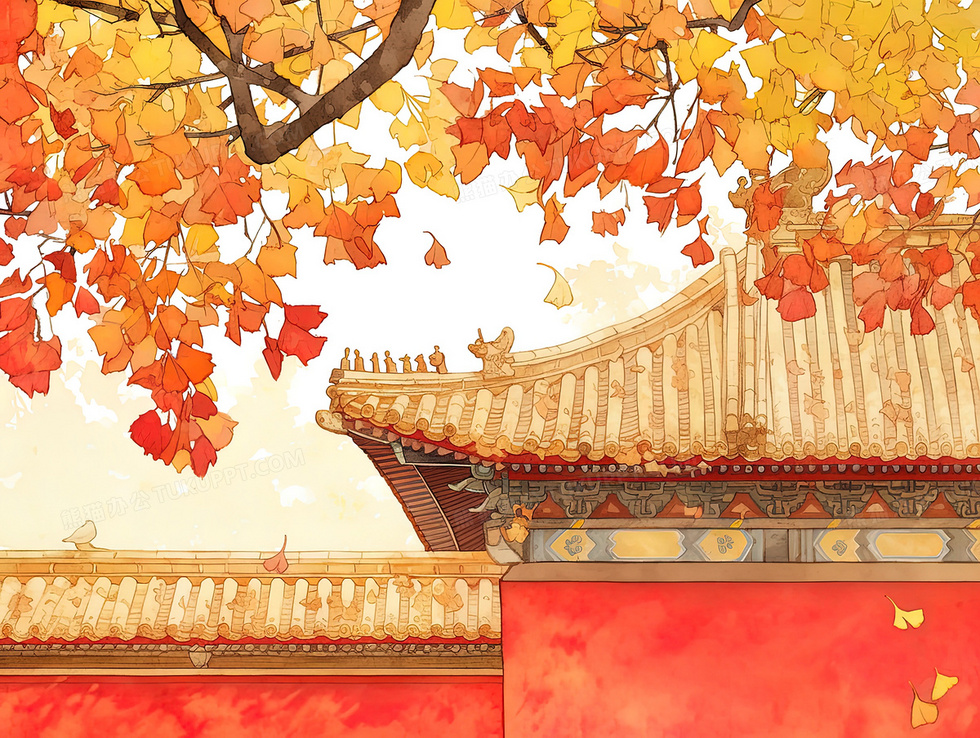 本作品内容为秋天故宫建筑宫墙金色落叶创意插画, 格式为 jpg, 大小4 MB, 图片尺寸为2464 x 1856, 源文件无水印, 欢迎使用熊猫办公。 如认为平台内容涉嫌侵权,可通过邮件:tousu@tukuppt.com提出书面通知,我们将及时处理。