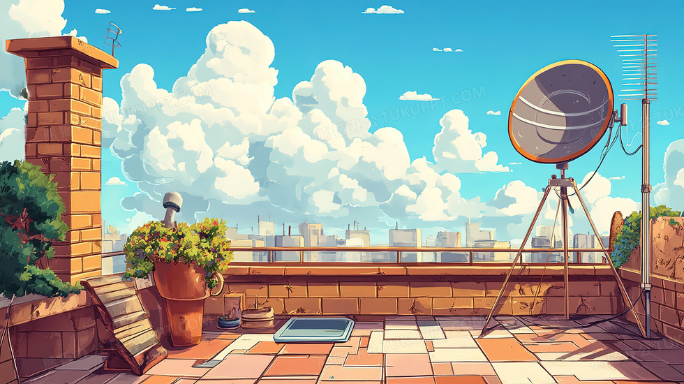本作品内容为蓝天白云房屋楼顶有线电视信号接收器插画, 格式为 jpg, 大小4 MB, 图片尺寸为2912 x 1632, 源文件无水印, 欢迎使用熊猫办公。 如认为平台内容涉嫌侵权,可通过邮件:tousu@tukuppt.com提出书面通知,我们将及时处理。