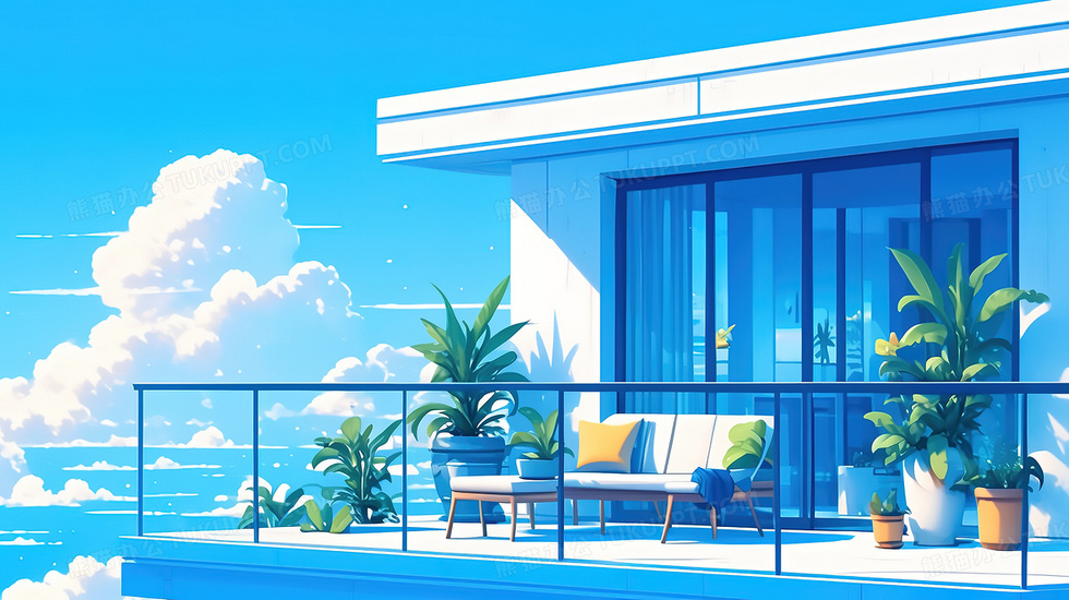本作品内容为卡通城市阳台风景蓝天白云插画, 格式为 jpg, 大小3 MB, 图片尺寸为2912 x 1632, 源文件无水印, 欢迎使用熊猫办公。 如认为平台内容涉嫌侵权,可通过邮件:tousu@tukuppt.com提出书面通知,我们将及时处理。