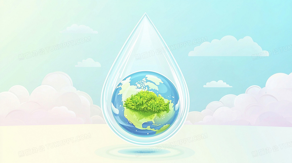 本作品内容为小清新保护地球爱护水资源背景, 格式为 jpg, 大小2 MB, 图片尺寸为2912 x 1632, 作品中背景图片无需修改, 源文件无水印,可以直接使用, 欢迎使用熊猫办公。 如认为平台内容涉嫌侵权,可通过邮件:tousu@tukuppt.com提出书面通知,我们将及时处理。