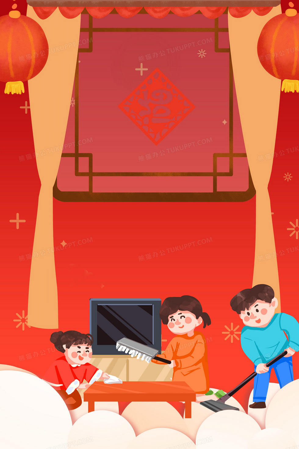 本作品内容为新年习俗大扫除过小年背景, 格式为 psd, 大小36 MB, 图片尺寸为3543 x 5315, 作品中背景图片无需修改, 源文件无水印,可以直接使用, 欢迎使用熊猫办公。 如认为平台内容涉嫌侵权,可通过邮件:tousu@tukuppt.com提出书面通知,我们将及时处理。