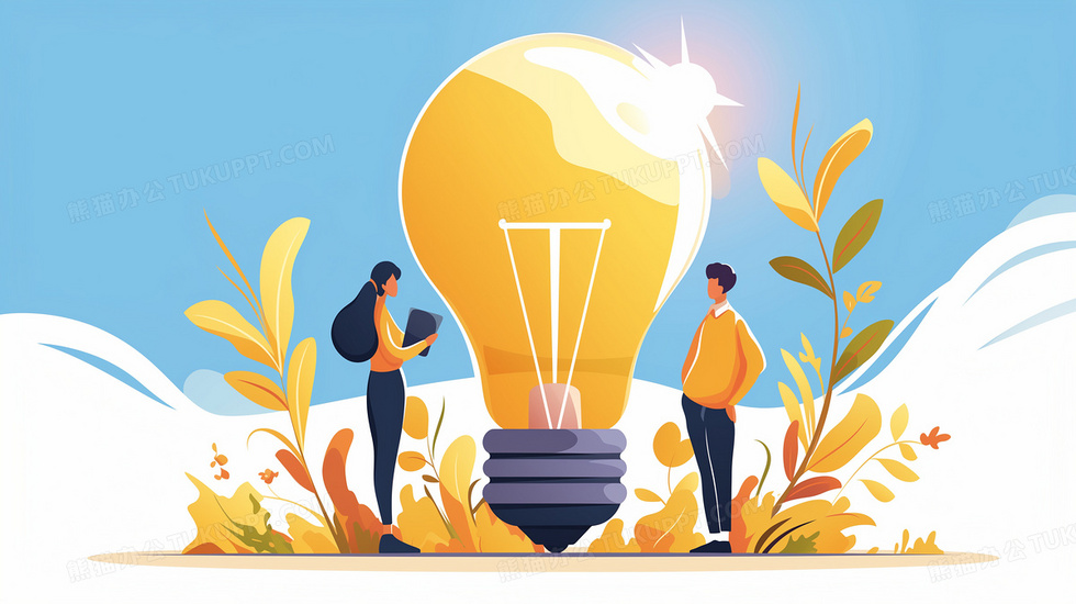 本作品内容为白领对着一个特别大的灯泡讨论问题插画, 格式为 jpg, 大小2 MB, 图片尺寸为2912 x 1632, 源文件无水印, 欢迎使用熊猫办公。 如认为平台内容涉嫌侵权,可通过邮件:tousu@tukuppt.com提出书面通知,我们将及时处理。