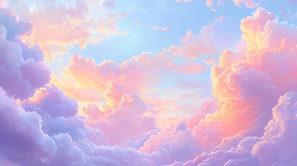 本作品内容为唯美浪漫梦幻天空云彩创意背景, 格式为 jpg, 大小2 MB, 图片尺寸为2912 x 1632, 作品中背景图片无需修改, 源文件无水印,可以直接使用, 欢迎使用熊猫办公。 如认为平台内容涉嫌侵权,可通过邮件:tousu@tukuppt.com提出书面通知,我们将及时处理。