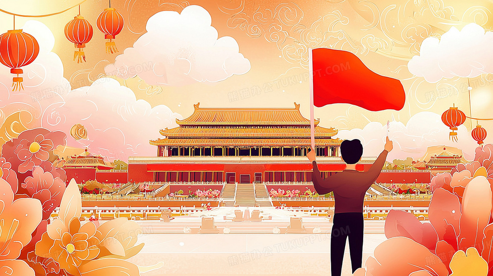 本作品内容为国庆手拿红旗的男子背影插画, 格式为 jpg, 大小3 MB, 图片尺寸为2912 x 1632, 源文件无水印, 欢迎使用熊猫办公。 如认为平台内容涉嫌侵权,可通过邮件:tousu@tukuppt.com提出书面通知,我们将及时处理。