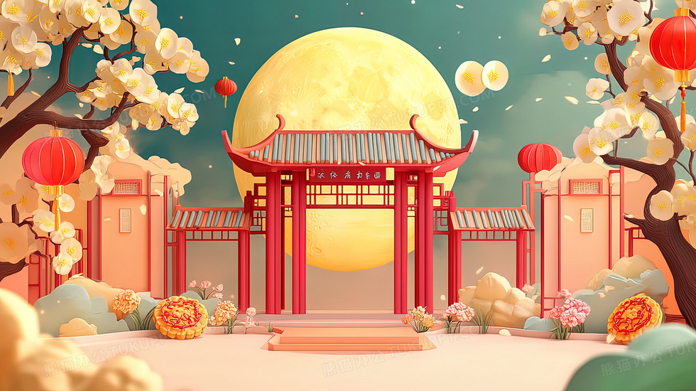 本作品内容为3D中秋圆月下的古建筑风景插画, 格式为 jpg, 大小3 MB, 图片尺寸为2912 x 1632, 源文件无水印, 欢迎使用熊猫办公。 如认为平台内容涉嫌侵权,可通过邮件:tousu@tukuppt.com提出书面通知,我们将及时处理。