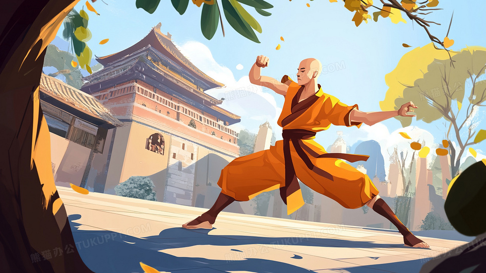 本作品内容为古代少林寺男子练习中国功夫插画, 格式为 jpg, 大小3 MB, 图片尺寸为2912 x 1632, 源文件无水印, 欢迎使用熊猫办公。 如认为平台内容涉嫌侵权,可通过邮件:tousu@tukuppt.com提出书面通知,我们将及时处理。