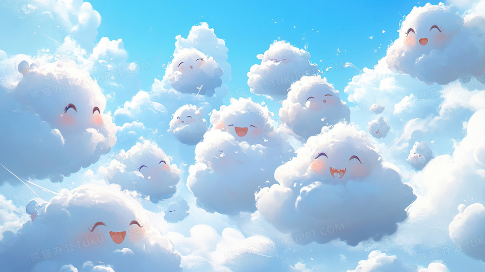本作品内容为多云天气情况拟人化插画, 格式为 jpg, 大小3 MB, 图片尺寸为2912 x 1632, 源文件无水印, 欢迎使用熊猫办公。 如认为平台内容涉嫌侵权,可通过邮件:tousu@tukuppt.com提出书面通知,我们将及时处理。