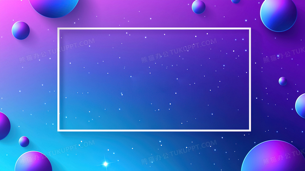 本作品内容为炫彩渐变矩形边框漂浮圆球创意背景, 格式为 jpg, 大小3 MB, 图片尺寸为2912 x 1632, 作品中背景图片无需修改, 源文件无水印,可以直接使用, 欢迎使用熊猫办公。 如认为平台内容涉嫌侵权,可通过邮件:tousu@tukuppt.com提出书面通知,我们将及时处理。