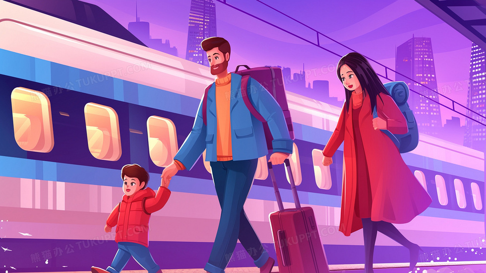 本作品内容为春运一家人赶高铁回家过年插画, 格式为 jpg, 大小2 MB, 图片尺寸为2912 x 1632, 源文件无水印, 欢迎使用熊猫办公。 如认为平台内容涉嫌侵权,可通过邮件:tousu@tukuppt.com提出书面通知,我们将及时处理。