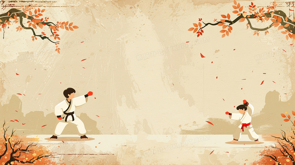 本作品内容为卡通跆拳道兴趣班背景, 格式为 jpg, 大小4 MB, 图片尺寸为2912 x 1632, 作品中背景图片无需修改, 源文件无水印,可以直接使用, 欢迎使用熊猫办公。 如认为平台内容涉嫌侵权,可通过邮件:tousu@tukuppt.com提出书面通知,我们将及时处理。