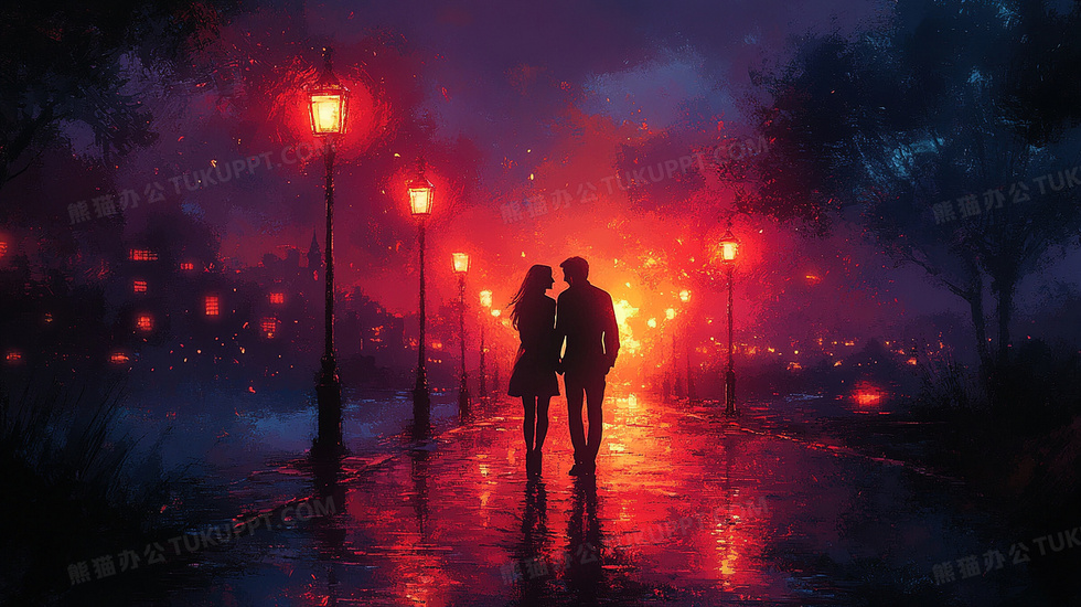 本作品内容为路灯下的情侣夜景插画, 格式为 jpg, 大小4 MB, 图片尺寸为2912 x 1632, 源文件无水印, 欢迎使用熊猫办公。 如认为平台内容涉嫌侵权,可通过邮件:tousu@tukuppt.com提出书面通知,我们将及时处理。