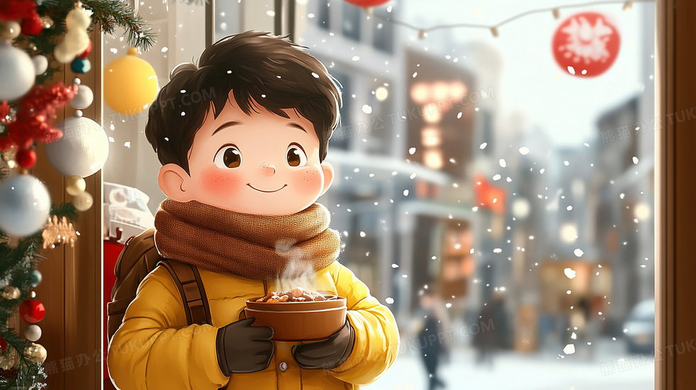本作品内容为冬季保暖穿着厚重羽绒服拿着一碗热汤人物插画, 格式为 jpg, 大小3 MB, 图片尺寸为2912 x 1632, 源文件无水印, 欢迎使用熊猫办公。 如认为平台内容涉嫌侵权,可通过邮件:tousu@tukuppt.com提出书面通知,我们将及时处理。