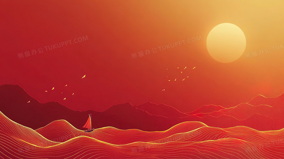 本作品内容为红金杨帆启航背景, 格式为 jpg, 大小3 MB, 图片尺寸为2912 x 1632, 作品中背景图片无需修改, 源文件无水印,可以直接使用, 欢迎使用熊猫办公。 如认为平台内容涉嫌侵权,可通过邮件:tousu@tukuppt.com提出书面通知,我们将及时处理。