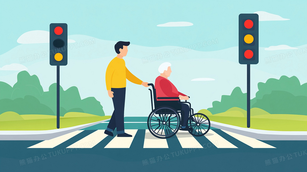 本作品内容为志愿者献爱心帮助老人过马路插画, 格式为 jpg, 大小2 MB, 图片尺寸为2912 x 1632, 源文件无水印, 欢迎使用熊猫办公。 如认为平台内容涉嫌侵权,可通过邮件:tousu@tukuppt.com提出书面通知,我们将及时处理。