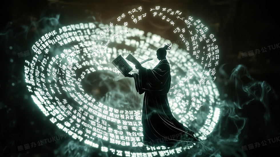 本作品内容为旋转的书法文字古代人物创意插画, 格式为 jpg, 大小3 MB, 图片尺寸为2912 x 1632, 源文件无水印, 欢迎使用熊猫办公。 如认为平台内容涉嫌侵权,可通过邮件:tousu@tukuppt.com提出书面通知,我们将及时处理。