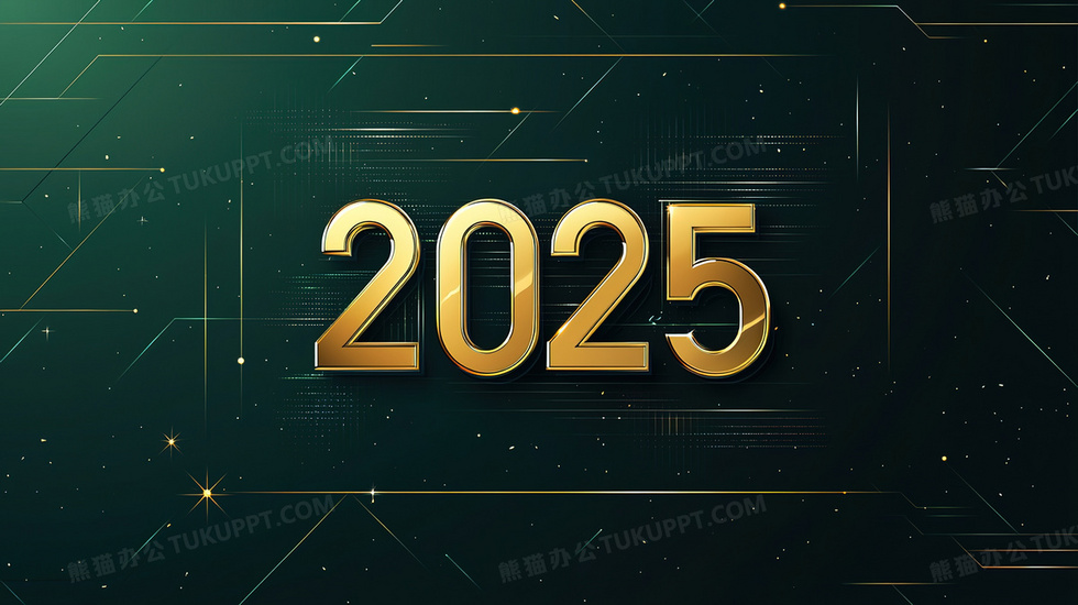 本作品内容为创意黑金色立体2025艺术字创意背景, 格式为 jpg, 大小2 MB, 图片尺寸为2912 x 1632, 作品中背景图片无需修改, 源文件无水印,可以直接使用, 欢迎使用熊猫办公。 如认为平台内容涉嫌侵权,可通过邮件:tousu@tukuppt.com提出书面通知,我们将及时处理。
