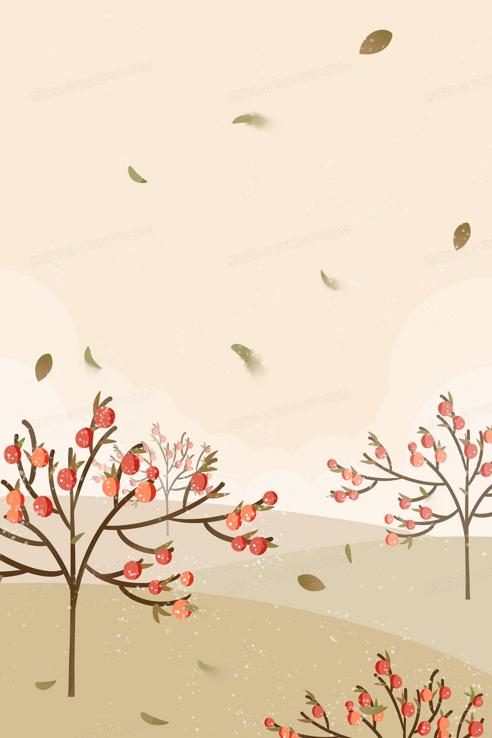 本作品内容为唯美霜降柿子林背景图, 格式为 psd, 大小14 MB, 图片尺寸为3543 x 5315, 作品中背景图片无需修改, 源文件无水印,可以直接使用, 欢迎使用熊猫办公。 如认为平台内容涉嫌侵权,可通过邮件:tousu@tukuppt.com提出书面通知,我们将及时处理。