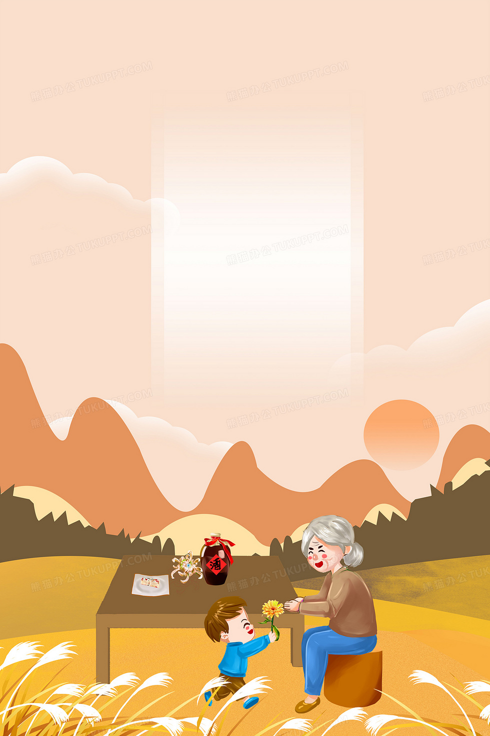 本作品内容为重阳节卡通重阳美食敬老卡通背景, 格式为 psd, 大小248 MB, 图片尺寸为7086 x 10631, 作品中背景图片无需修改, 源文件无水印,可以直接使用, 欢迎使用熊猫办公。 如认为平台内容涉嫌侵权,可通过邮件:tousu@tukuppt.com提出书面通知,我们将及时处理。