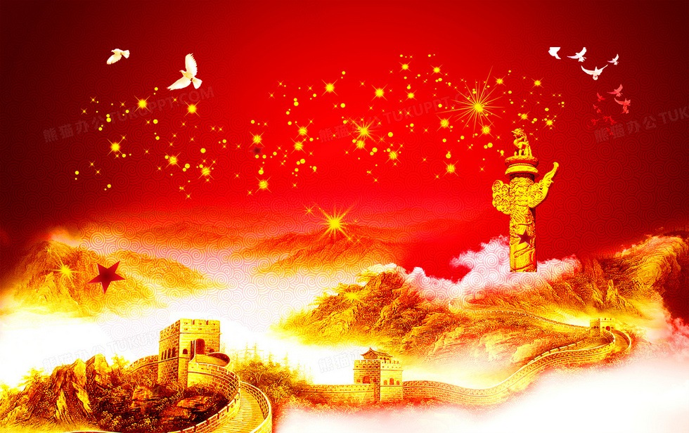 本作品内容为金色炫酷国庆节背景, 格式为 psd, 图片尺寸为3583 x 2252, 作品中背景图片无需修改, 源文件无水印,可以直接使用, 欢迎使用熊猫办公。 如认为平台内容涉嫌侵权,可通过邮件:tousu@tukuppt.com提出书面通知,我们将及时处理。