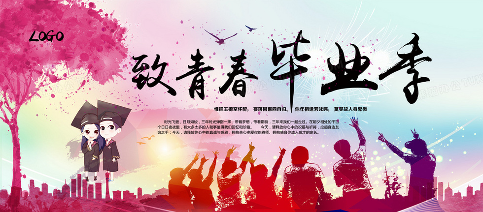 本作品内容为致青春毕业季海报, 格式为 psd, 图片尺寸为1920 x 844, 作品中背景图片无需修改, 源文件无水印,可以直接使用, 欢迎使用熊猫办公。 如认为平台内容涉嫌侵权,可通过邮件:tousu@tukuppt.com提出书面通知,我们将及时处理。