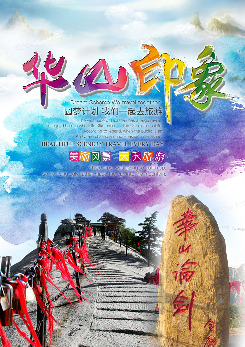 本作品内容为唯美华山旅游海报背景, 格式为 psd, 图片尺寸为2480 x 3508, 作品中背景图片无需修改, 源文件无水印,可以直接使用, 欢迎使用熊猫办公。 如认为平台内容涉嫌侵权,可通过邮件:tousu@tukuppt.com提出书面通知,我们将及时处理。