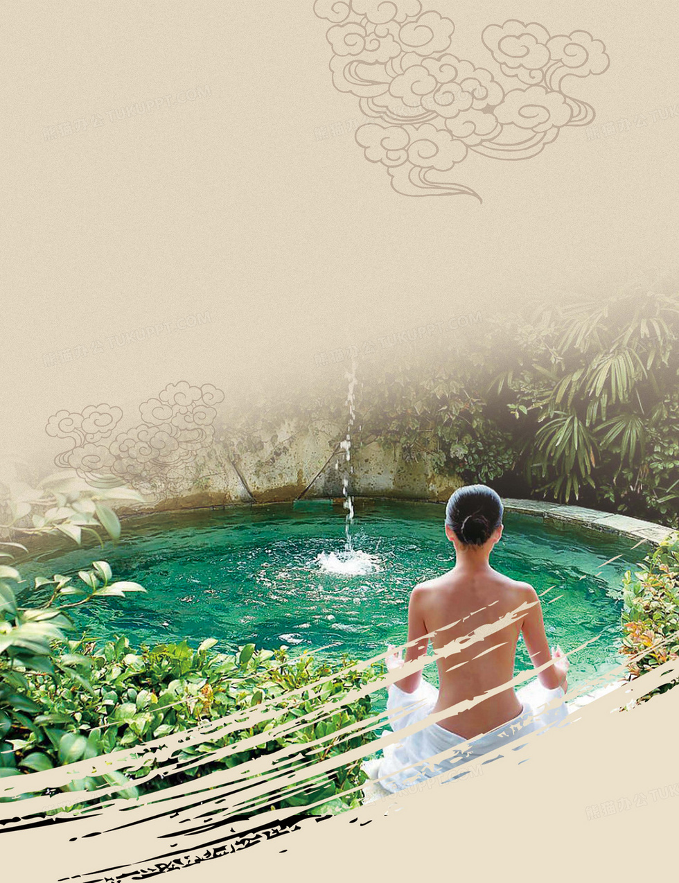 本作品内容为黄色中国风旅游温泉背景, 格式为 psd, 图片尺寸为3502 x 4552, 作品中背景图片无需修改, 源文件无水印,可以直接使用, 欢迎使用熊猫办公。 如认为平台内容涉嫌侵权,可通过邮件:tousu@tukuppt.com提出书面通知,我们将及时处理。