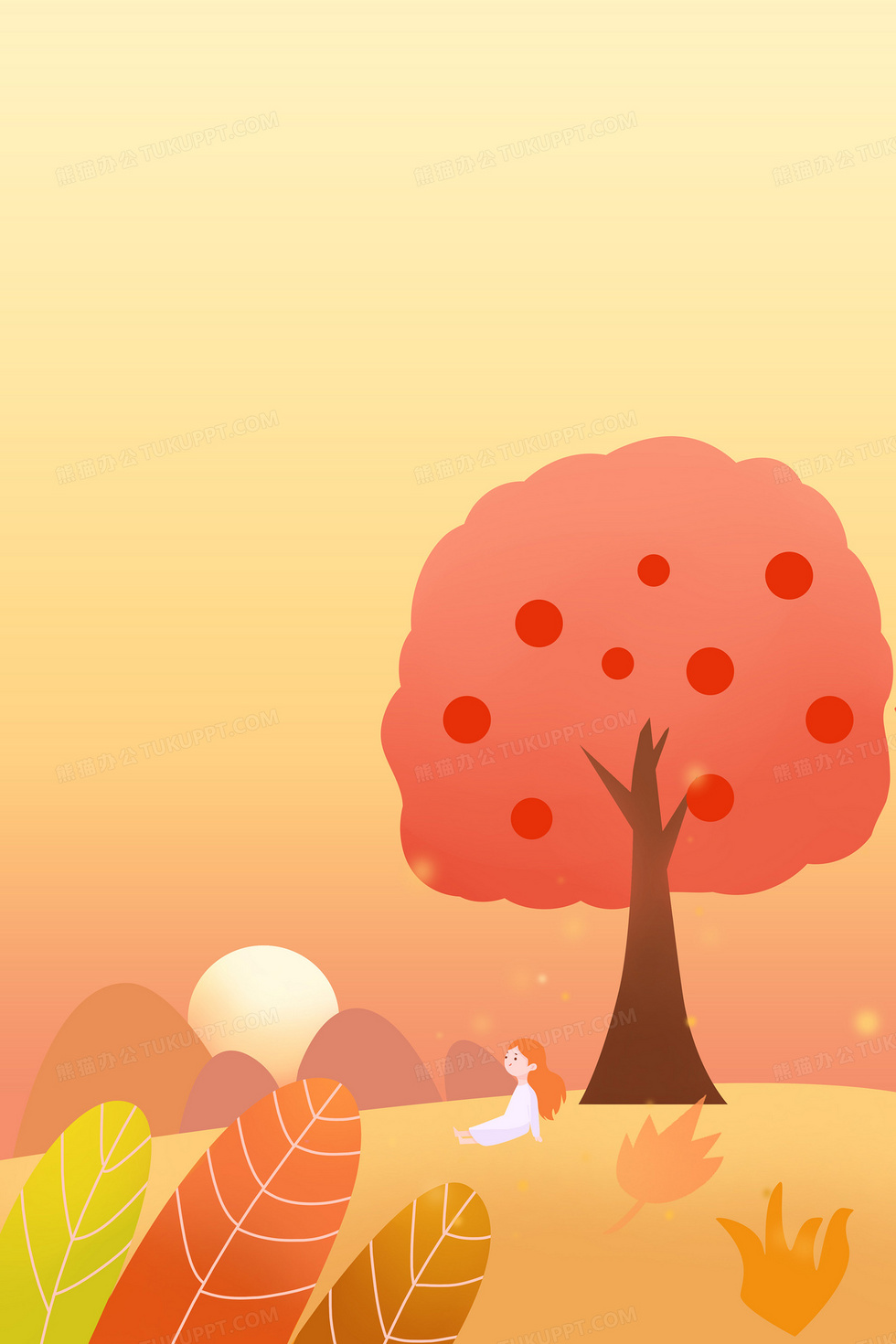 本作品内容为秋季女孩秋游唯美背景图, 格式为 psd, 大小9 MB, 图片尺寸为3543 x 5315, 作品中背景图片无需修改, 源文件无水印,可以直接使用, 欢迎使用熊猫办公。 如认为平台内容涉嫌侵权,可通过邮件:tousu@tukuppt.com提出书面通知,我们将及时处理。