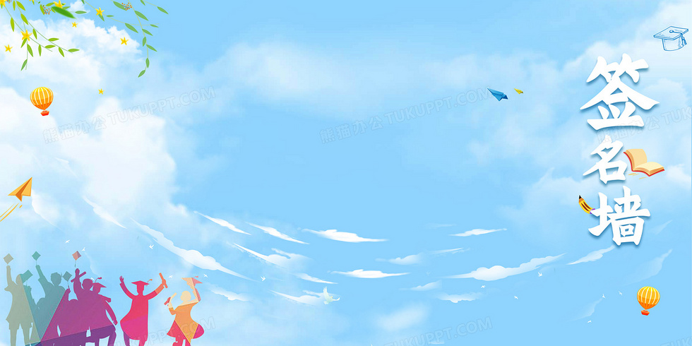 本作品内容为简约清新毕业留言板背景, 格式为 psd, 大小52 MB, 图片尺寸为4724 x 2362, 作品中背景图片无需修改, 源文件无水印,可以直接使用, 欢迎使用熊猫办公。 如认为平台内容涉嫌侵权,可通过邮件:tousu@tukuppt.com提出书面通知,我们将及时处理。
