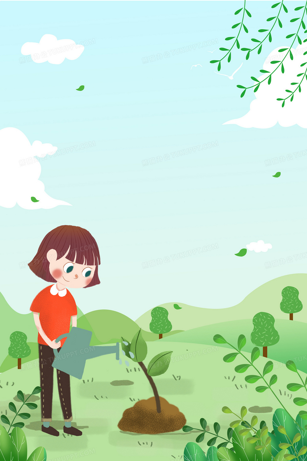 本作品内容为绿色清新女孩植树节种树浇水卡通背景, 格式为 psd, 大小56 MB, 图片尺寸为3543 x 5315, 作品中背景图片无需修改, 源文件无水印,可以直接使用, 欢迎使用熊猫办公。 如认为平台内容涉嫌侵权,可通过邮件:tousu@tukuppt.com提出书面通知,我们将及时处理。