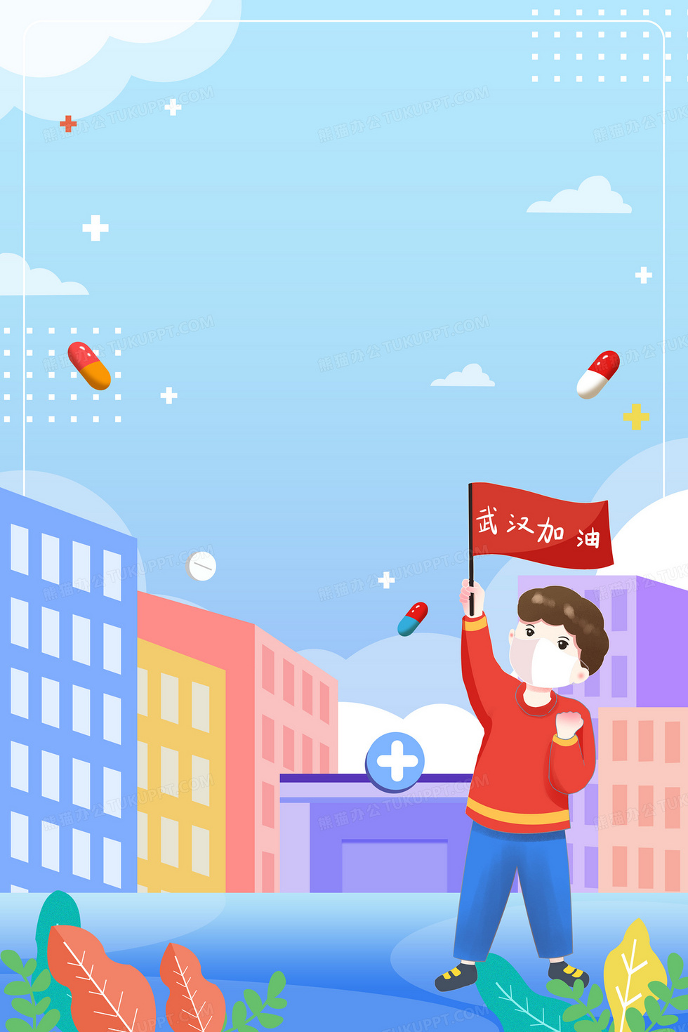 本作品内容为武汉加油抗击湖南肺炎卡通背景, 格式为 psd, 大小60 MB, 图片尺寸为3543 x 5315, 作品中背景图片无需修改, 源文件无水印,可以直接使用, 欢迎使用熊猫办公。 如认为平台内容涉嫌侵权,可通过邮件:tousu@tukuppt.com提出书面通知,我们将及时处理。